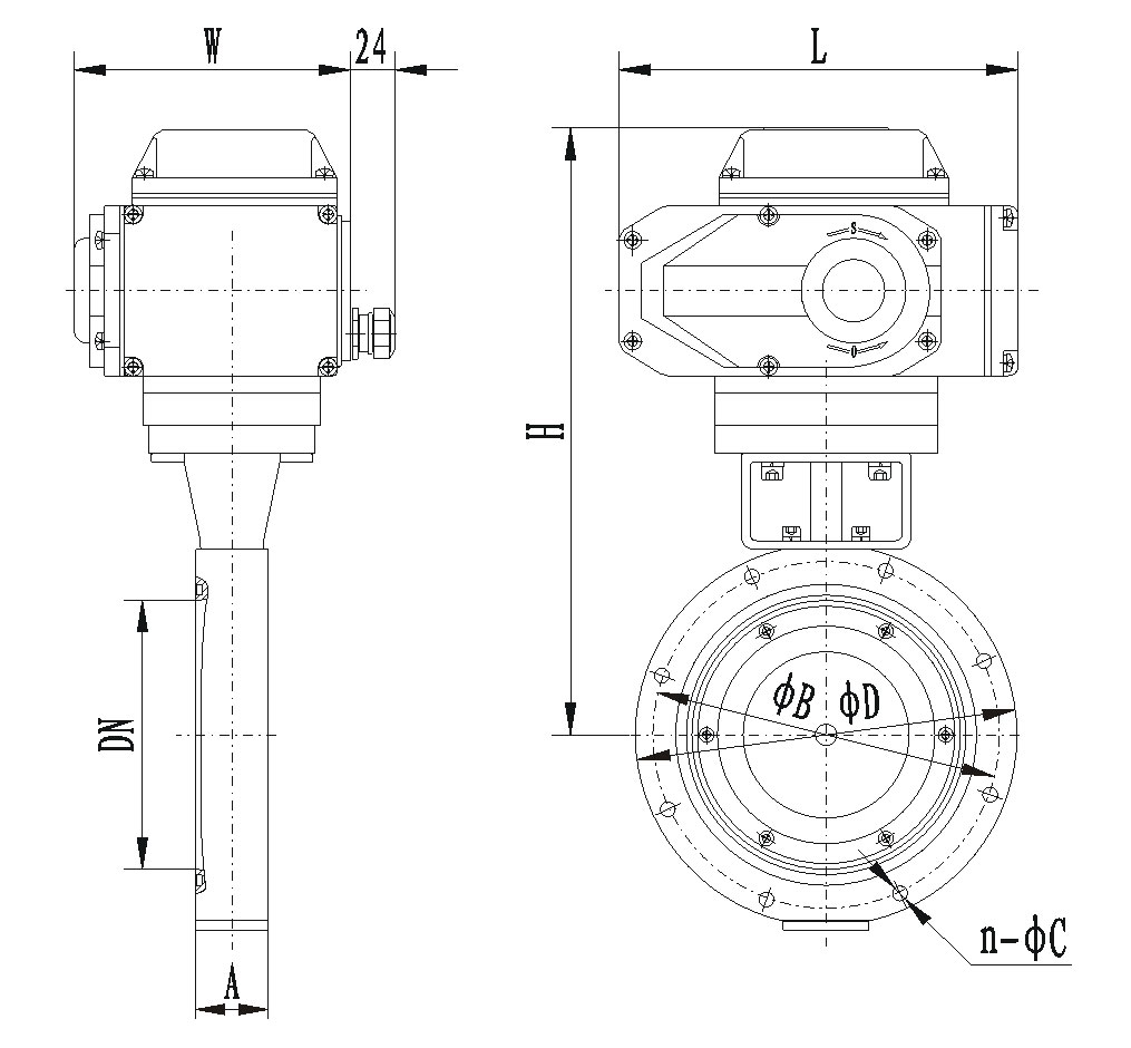 二、CID-A系列電動高真空碟閥的尺寸圖: